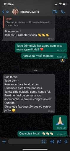 Na Mentoria Mulher Foda - meu atendimento online e individual que dura 6 meses e tem 5 sessões individuais comigo e mais 12 encontros quinzenais para tirar dúvidas no formato Hotseat - vou te ajudar a não ser enrolada pelos homens errados e vou te mostrar técnicas para você começar a atrair, conquistar e manter um relacionamento saudável com um homem foda para você em 6 meses. Para você viajar o mundo com ele e ter alguém para dividir a vida.